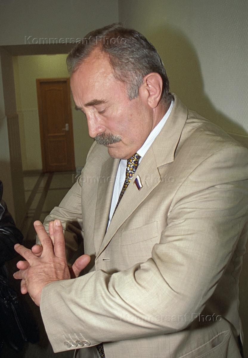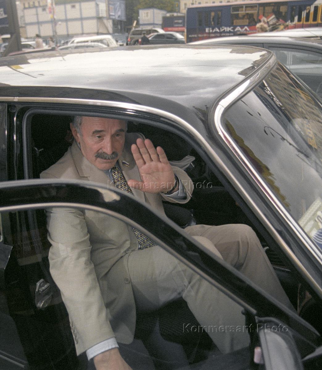 Кандидат в президенты Чеченской республики, депутат Государственной Думы России Асламбек Аслаханов в автомобиле после пресс-конференции на тему "Ход избирательной кампании по выборам 5 октября президента Чеченской республики". Пресс-конференция состоялась в агентстве "Интерфакс".