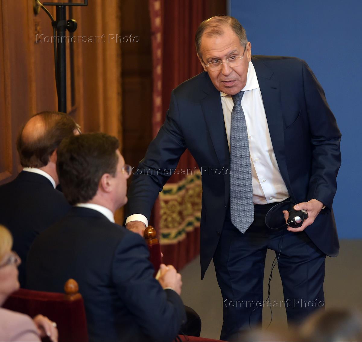 Рабочая поездка президента России Владимира Путина в Будапешт. Министр иносранных дел России Сергей Лавров перед началом совместной пресс-конференции президента России Владимира Путина и премьер-министра Венгрии Виктора Орбана по итогам российско-венгерских переговоров.