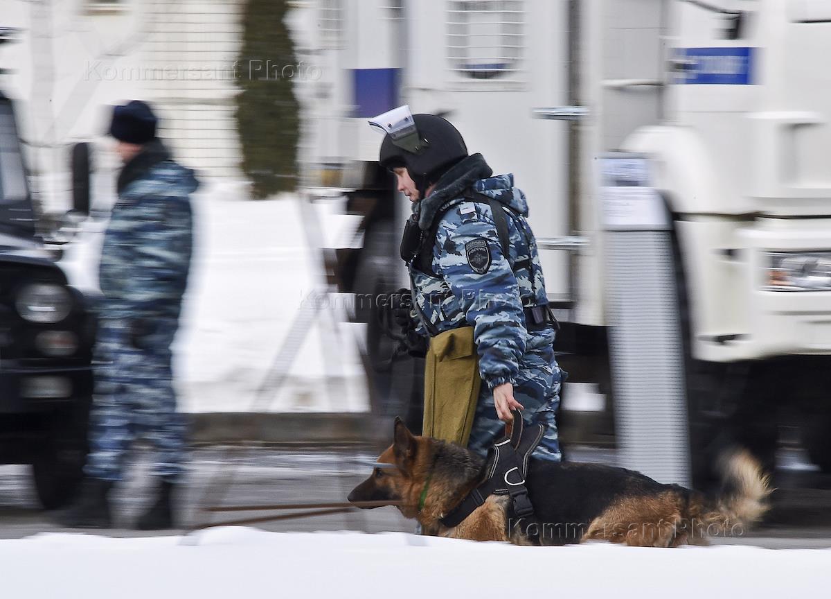 Демонстрация образцов специальной техники, вооружения и экипировки отрядов ОМОН и СОБР в Управлении Национальной гвардии России (Росгвардии). Кинолог со служебной собакой.