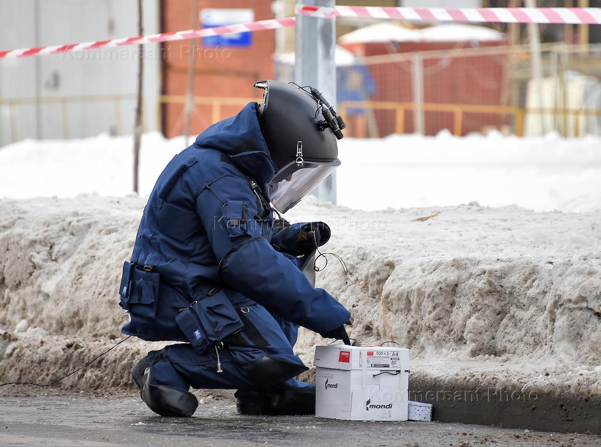 Демонстрация образцов специальной техники, вооружения и экипировки отрядов ОМОН и СОБР в Управлении Национальной гвардии России (Росгвардии). Жанровая фотография. Портфель в руках участника демонстрации.