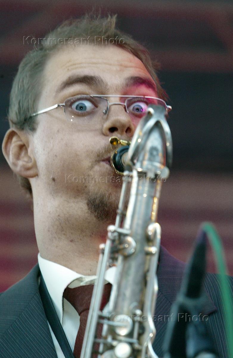 Выступление участника Первого международного блюзового фестиваля "Очаково - блюз". Фестиваль и блюзовый марафон состоялись на стадионе "Динамо".