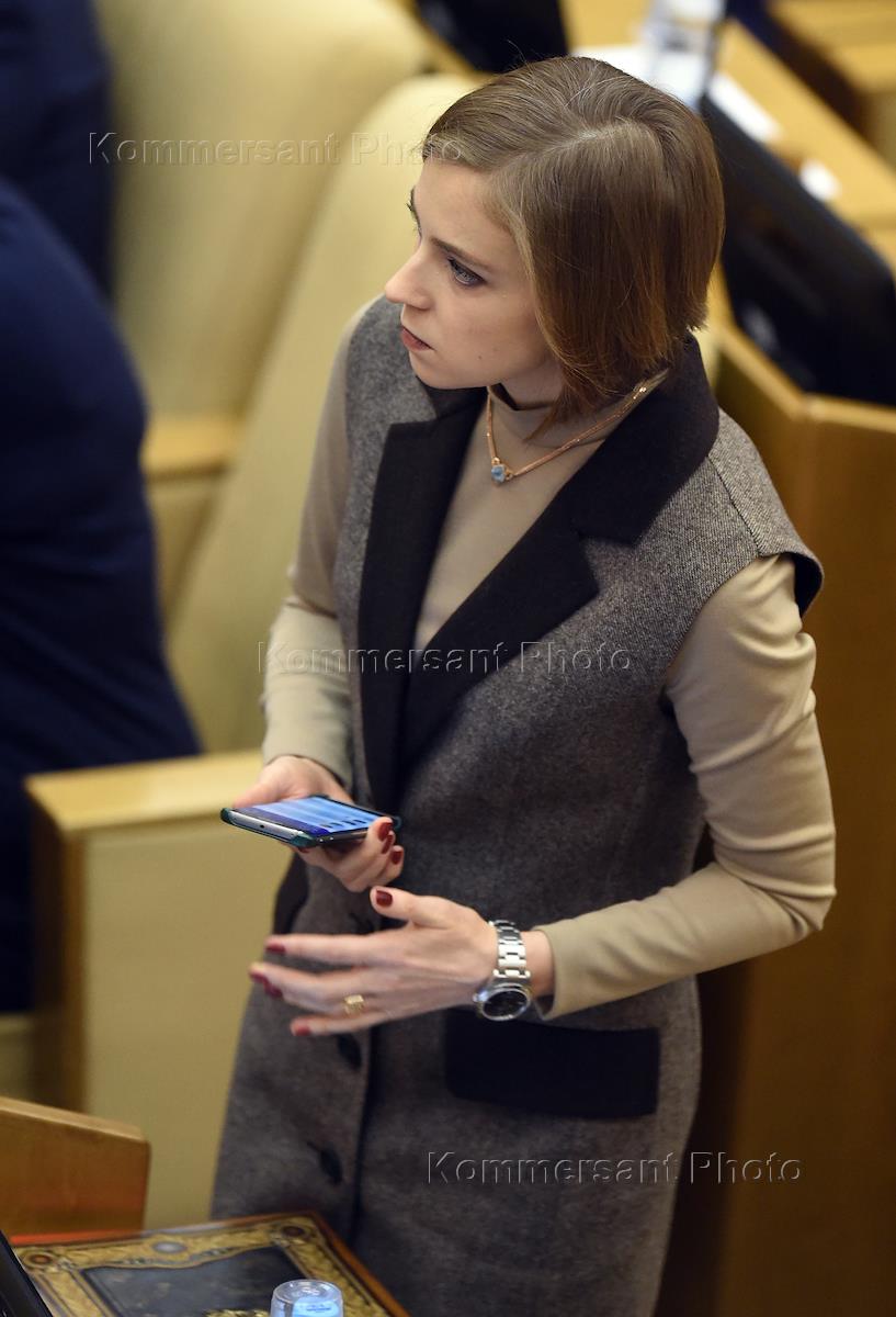Пленарное заседание Государственной думы (ГД) России. Заместитель председателя комитета ГД по безопасности и противодействию коррупции Наталья Поклонская во время заседания.