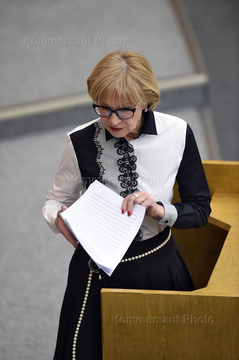 Пленарное заседание Государственной думы (ГД) России. Первый заместитель председателя комитета ГД России по культуре Елена Драпеко во время заседания.