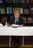 Заседание Медиаклуба Русского географического общества в штаб-квартире Русского географического общества (РГО). Декан географического факультета МГУ имени М.В.Ломоносова, первый вице-президент Русского географического общества Николай Касимов во время заседания.