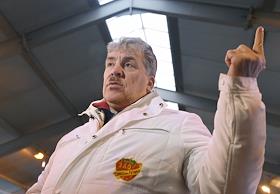 Роботизированная молочная ферма ЗАО "Совхоз имени Ленина". Директор ЗАО "Совхоз имени Ленина" Павел Грудинин во время интервью.