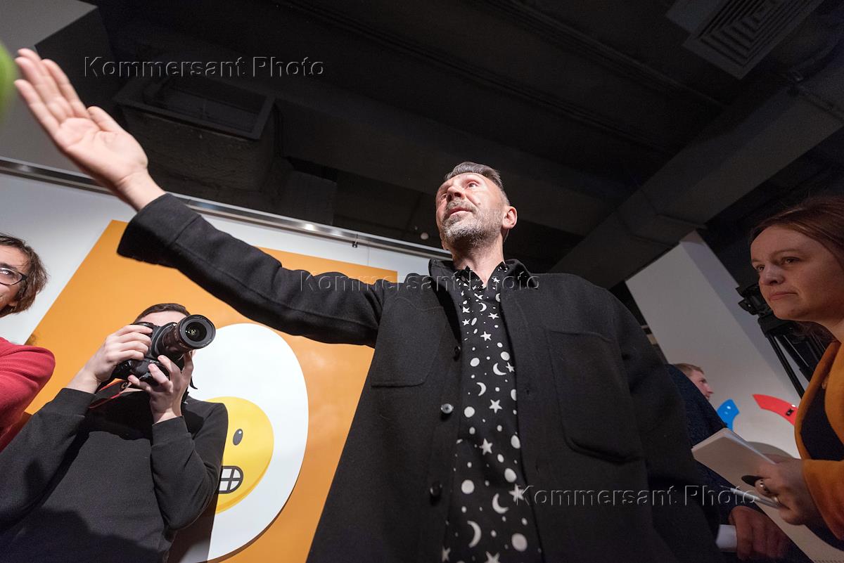 Персональная выставка лидера группы "Ленинград" Сергея Шнурова "Ретроспектива брендреализма" прошла в Музее современного искусства "Эрарта". Лидер группы "Ленинград" Сергей Шнуров на церемонии открытия выставки.