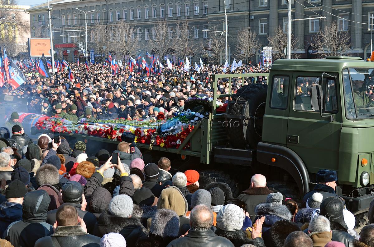 Церемония прощания с командиром батальона ВС ДНР "Сомали" Михаилом Толстых (Гиви) прошла в здании Донецкого государственного академического театра оперы и балета имени А.Б.Соловьяненко.