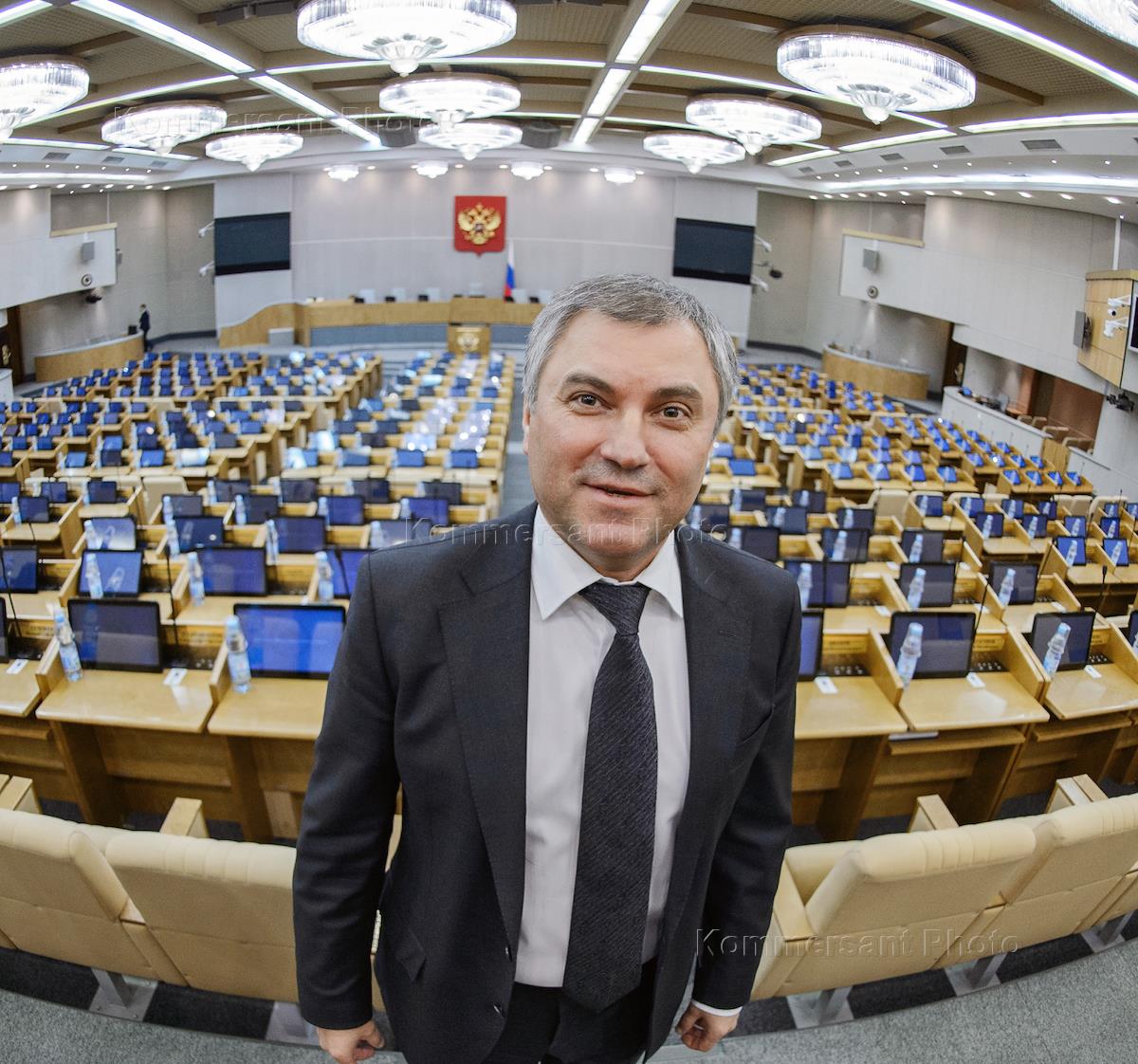 Председатель Государственной думы (ГД) России Вячеслав Володин во время интервью в здании ГД России.