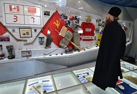 Церемония открытия Государственного музея спорта прошла в главном здании усадьбы А.К.Разумовского. Член комитета ГД по энергетике Александр Карелин во время осмотра экспозиции.