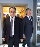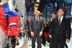 Церемония открытия Государственного музея спорта прошла в главном здании усадьбы А.К.Разумовского. Заместитель председателя Правительства России Виталий Мутко (слева) во время осмотра экспозиции.