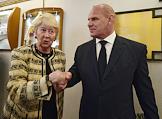 Церемония открытия Государственного музея спорта прошла в главном здании усадьбы А.К.Разумовского. Член комитета ГД по энергетике Александр Карелин (справа) и представитель в Совете Федерации России от Государственного Собрания Республики Марий Эл Наталья Дементьева (слева) во время осмотра экспозиции.