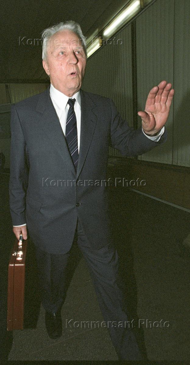 Депутат Государственной Думы России от фракции КПРФ Егор Лигачев после съезда Коммунистической партии России. Предвыборный съезд партии прошел в закрытом режиме в помещении Росагропромстроя.
