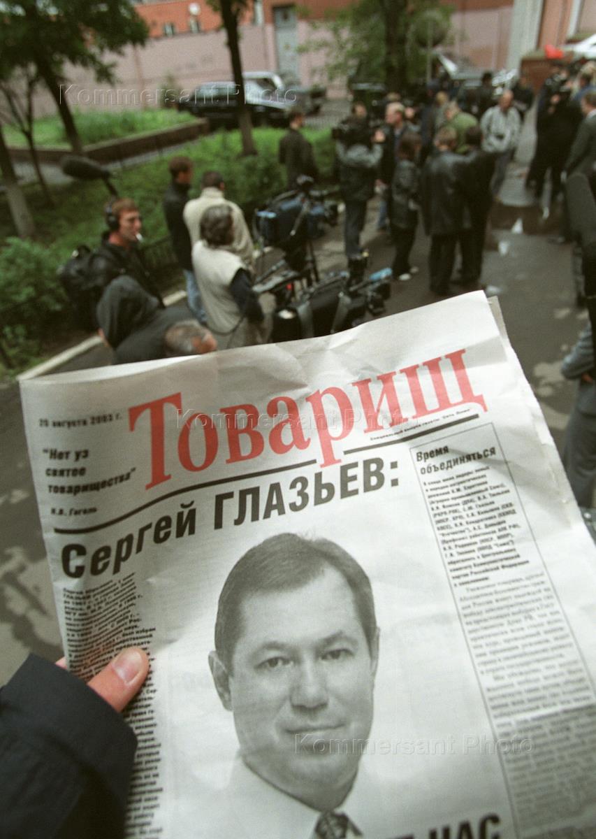 Газета "Товарищ" с портретом Глазьева в руках читателя.