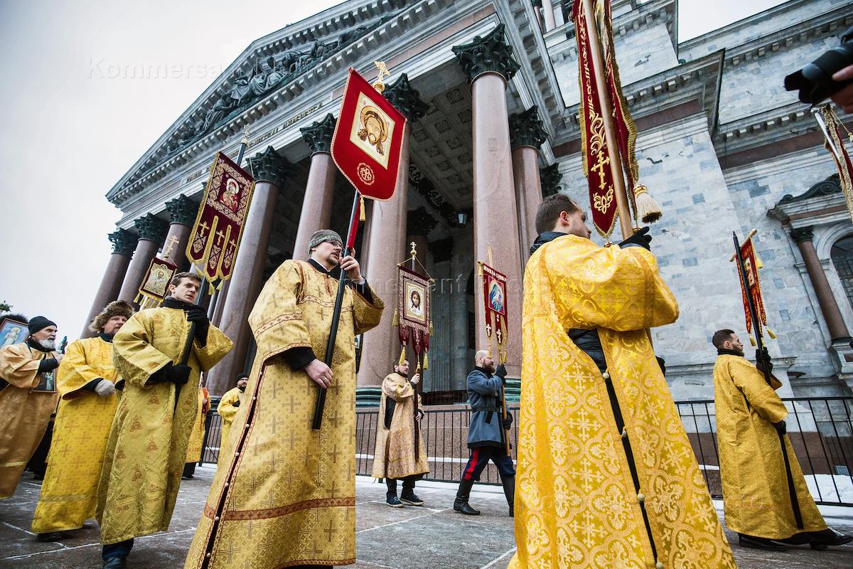 Участники крестного хода у Исаакиевского собора.
