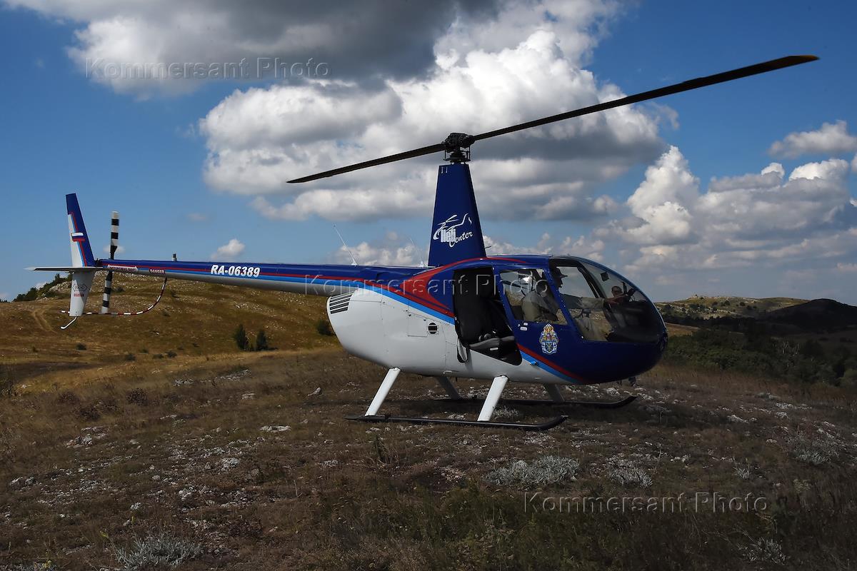 Жанровая фотография. Вертолет Robinson R-66 во время посадки.