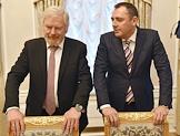 Расширенное заседание попечительского совета киностудии "Ленфильма". Руководитель попечительского совета, директор Службы внешней разведки России Сергей Нарышкин (слева) и заместитель министра финансов России Сергей Сторчак (справа) перед началом заседания.