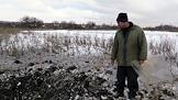 Последствия артиллерийского обстрела территории Донецкой области Вооруженными Силами (ВС) Украины. Житель поселка Старомихайловка у воронки.