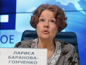 Секретарь Союза писателей России Лариса Баранова-Гонченко во время пресс-конференции, посвященной выходу книги лидера КПРФ Геннадия Зюганова "Время выбора, время действий!". Пресс-конференция прошла в агентстве ТАСС.