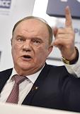 Председатель ЦК КПРФ, руководитель фракции КПРФ в Государственной думе (ГД) России Геннадий Зюганов (слева) и заместитель председателя ЦК КПРФ , первый заместитель председателя комитета ГД России по международным делам Дмитрий Новиков (справа) во время пресс-конференции, посвященной выходу книги Геннадия Зюганова "Время выбора, время действий!". Пресс-конференция прошла в агентстве ТАСС.