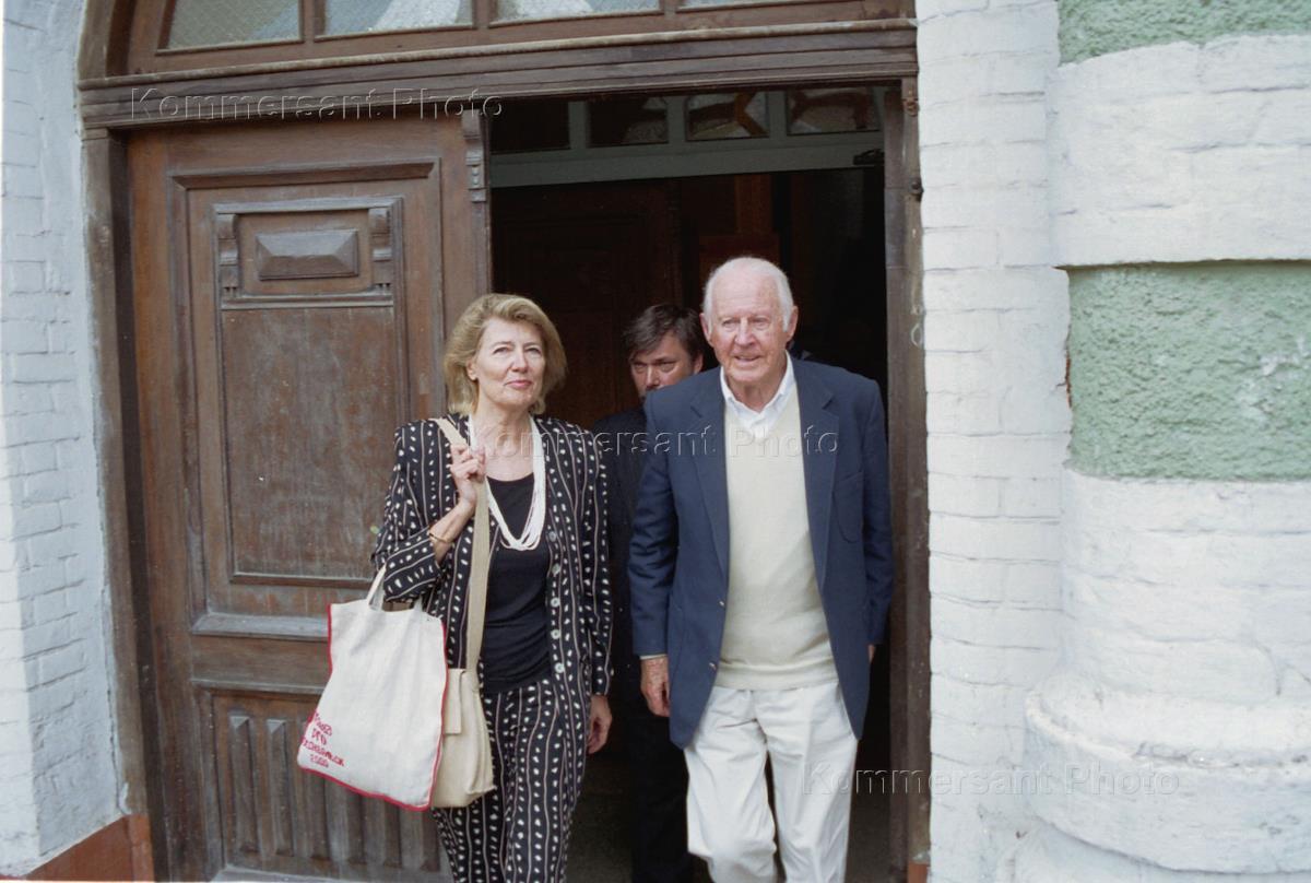 Путешественник Тур Хейердал (справа), который инициировал и финансирует российско-норвежскую археологическую экспедицию в Азове. Цель экспедиции - найти подтверждение гипотезе о миграции племени асов под предводительством Одина из устья Дона на север.