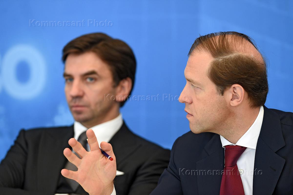 Заседание президиума Совета при Президенте России по модернизации экономики и инновационному развитию России в инновационном центре Сколково. Министр промышленности и торговли Денис Мантуров (слева) и министр экономического развития России Максим Орешкин (справа) во время заседания.