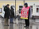 Жанровая фотография. Мужчина во время работы "живым" рекламным щитом.