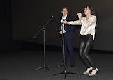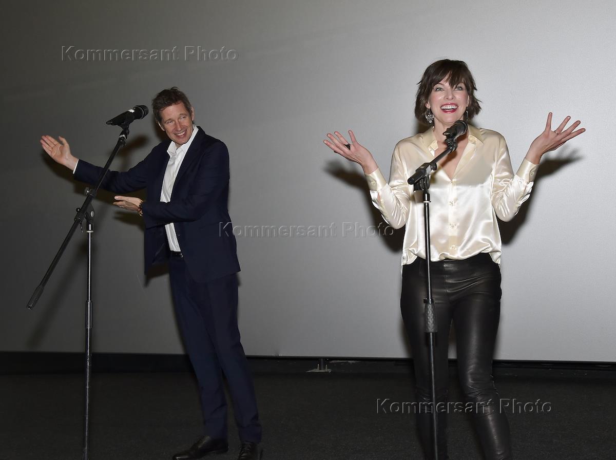American actress Milla Jovovich (right) and her husband, English film director Paul W. S. Anderson speak during the premiere of the 'Resident Evil: The Final Chapter' movie by Anderson.