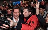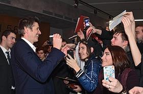 English film director Paul W. S. Anderson (left) poses for a selfie with his fans during the premiere of his 'Resident Evil: The Final Chapter' movie.