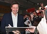 English film director Paul W. S. Anderson (centre) signs autographs during the premiere of his 'Resident Evil: The Final Chapter' movie.