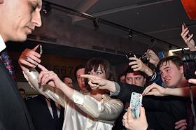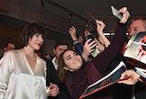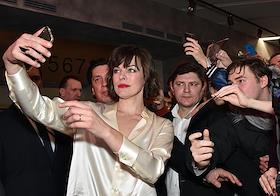 American actress Milla Jovovich (centre) poses for a selfie with her fans during the premiere of the 'Resident Evil: The Final Chapter' movie by English film director Paul W. S. Anderson.