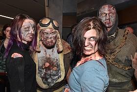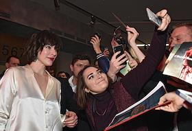 American actress Milla Jovovich (left) poses for a selfie with her fans during the premiere of the 'Resident Evil: The Final Chapter' movie by English film director Paul W. S. Anderson.