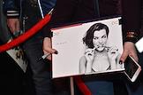 The portrait of actress Milla Jovovich is seen at the premiere of 'Resident Evil: The Final Chapter' movie by English film director Paul W. S. Anderson.