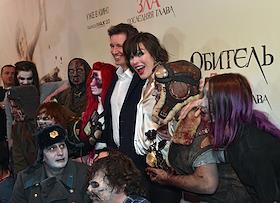 American actress Milla Jovovich (centre) and her husband, English film director Paul W. S. Anderson pose for a photograph during the premiere of the 'Resident Evil: The Final Chapter' movie by Anderson.