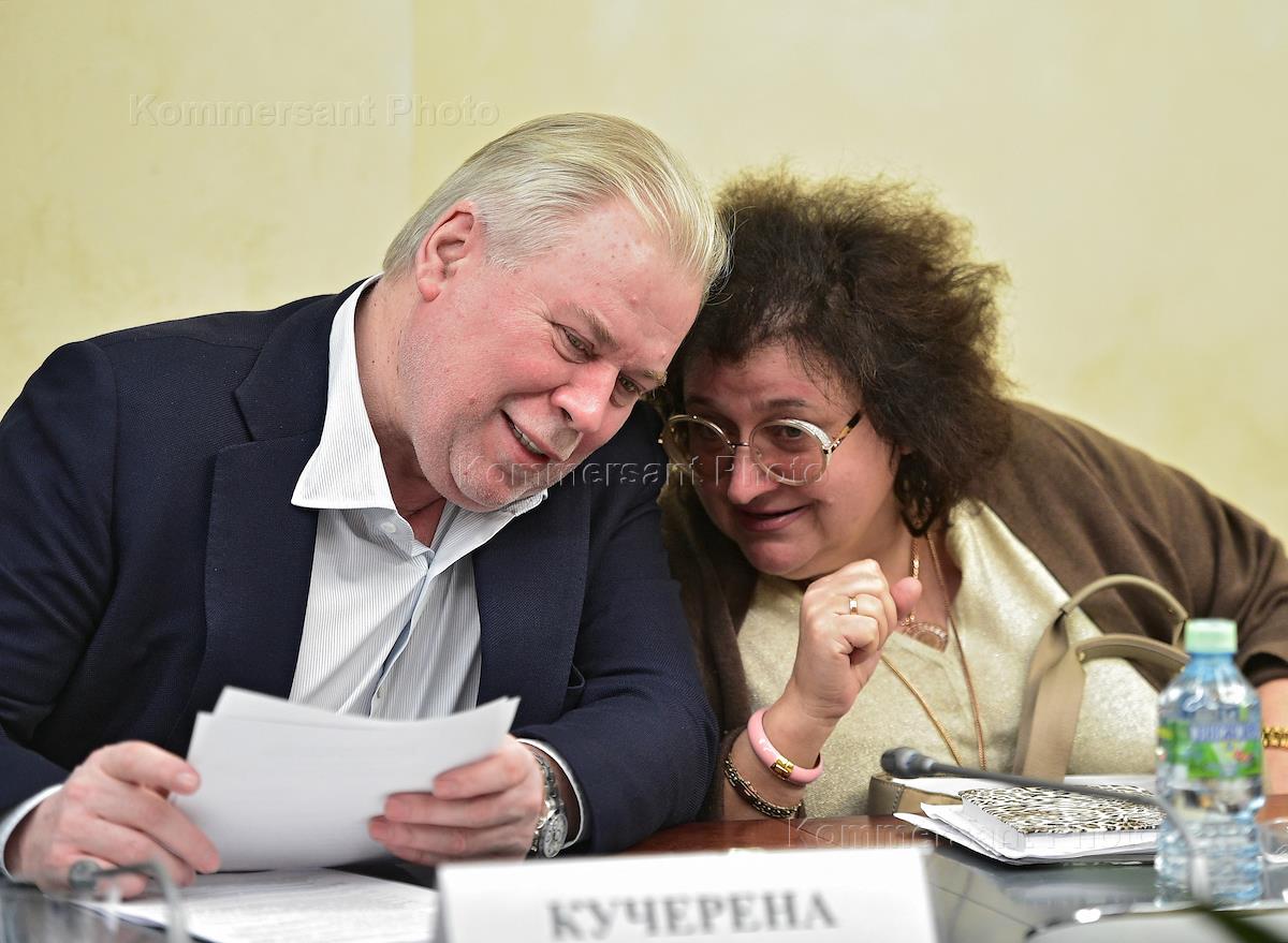 Заседание "Круглого стола" на тему "Рассмотрение предложений по внесению изменений в закон "Об основах системы профилактики безнадзорности и правонарушений несовершеннолетних" прошло в Общественной палате России. Члены комиссии по поддержке семьи, детей и материнства Общественной палаты России: руководитель проекта "Ванечка", президент межрегиональной общественной организации "Наши дети", Юлия Зимова (справа) и адвокат, председатель Общественного совета при МВД России Анатолий Кучерена (слева) во время заседания.