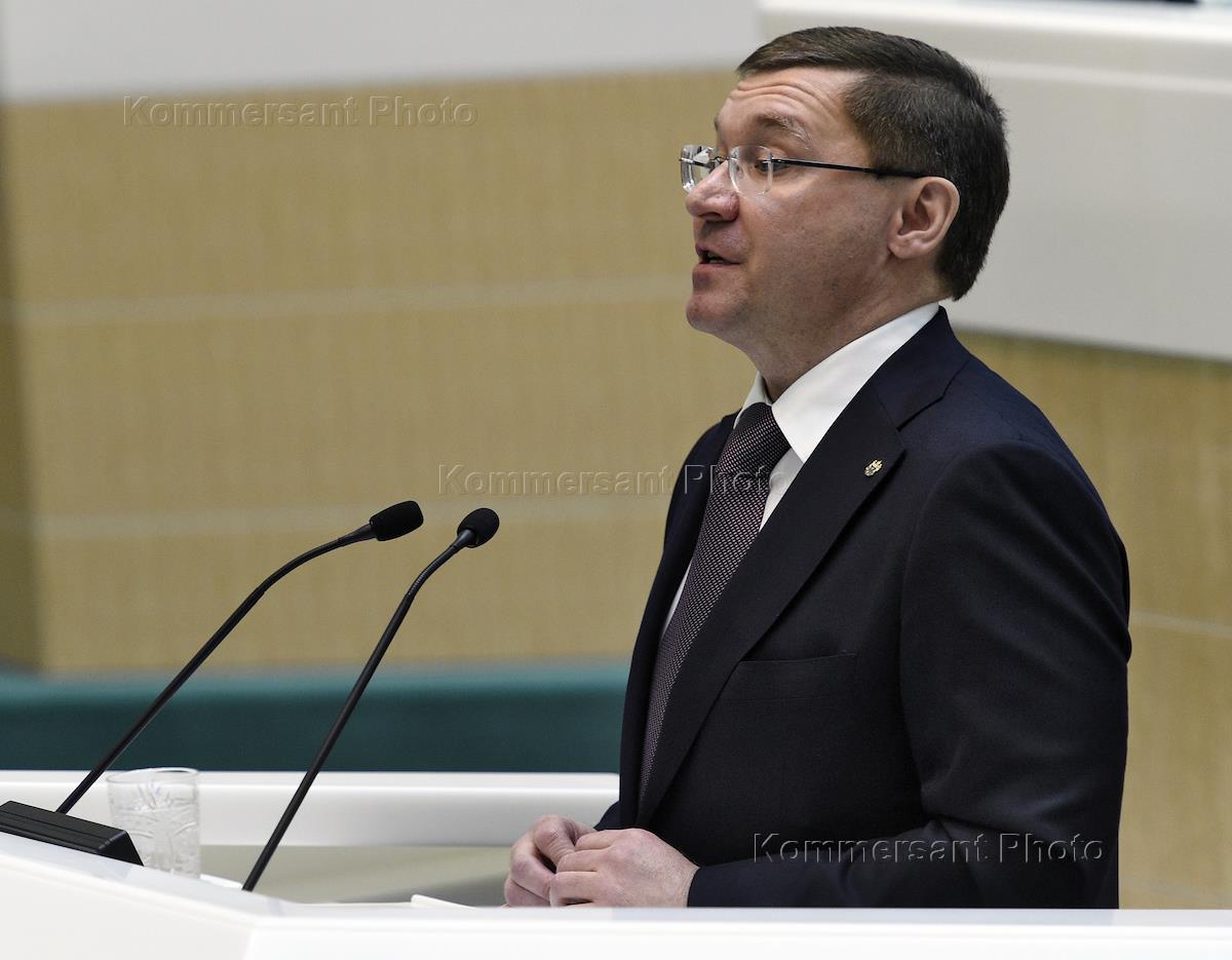 Plenary meeting of the Russian Federation Council. Representative in the Federation Council of Russia from the executive authority of the Karachay-Cherkess Republic, Rauf Arashukov during the meeting.