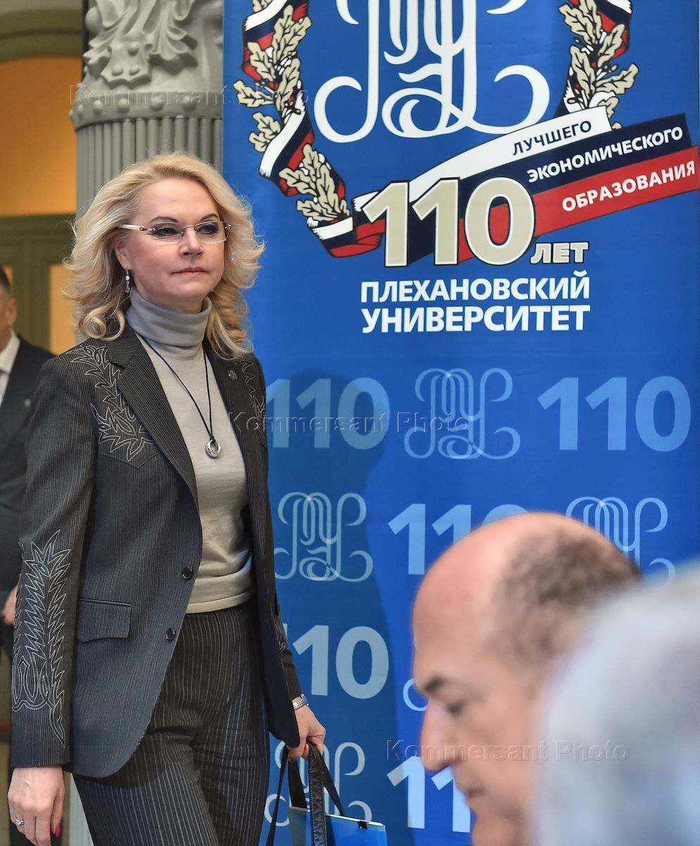 Деловой завтрак "Будущее высшего образования и развитие университетов", посвященный 110-летия Российскому экономическоми университету (РЭУ) имени Г.В. Плеханова. Председатель Счетной палаты Татьяна Голикова во время завтрака.
