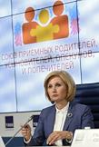 Член Координационного совета при президенте России по реализации национальной стратегии действий в интересах детей на 2012-2017 годы Галина Семья на пресс-конференции, посвященной взаимодействию усыновителей и опекунов с органами опеки и проблемам при процедуре изъятия приемных детей, проявившимся в истории с семьей Дель. Пресс-конференция прошла в пресс-центре агентства ТАСС.