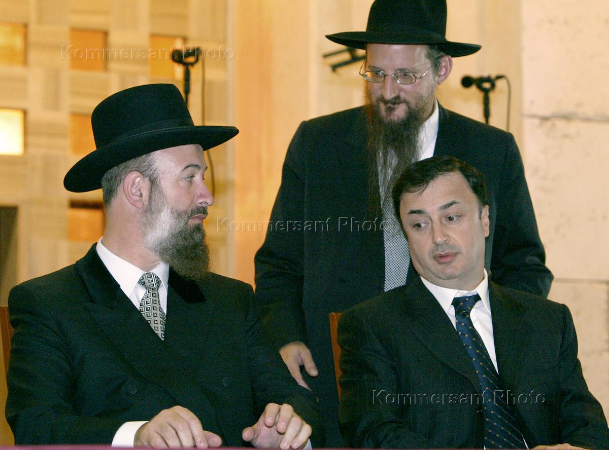 Chief rabbi of the Jewish Communities of Russia Federation Berl Lazar (left) talks to teh chief rabbi of Israel Yona Metsger (right) during the latter's visit to the Moscow Jewish Centre.
