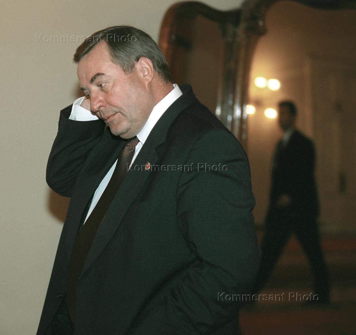 Chairman of the Russian State Duma and leader of the Russian Renaissance Party (PVR) Gennady Seleznev (left) and singer Nikolai Baskov (centre) attend the II meeting of the PVR.