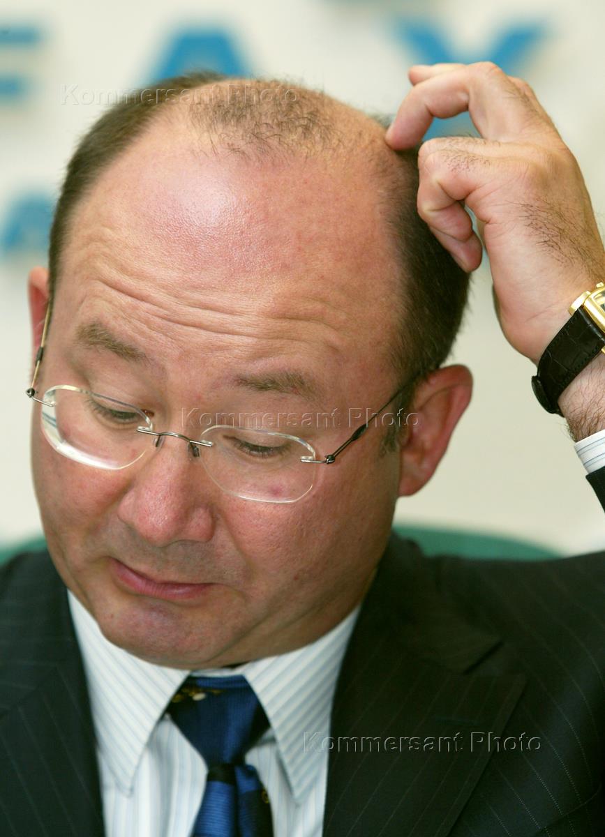 Президент банка "Уралсиб" Азат Курманаев во время пресс-конференции на тему: "Политтехнологический бандитизм. Раскрыт план проведения крупномасштабной диверсии в отношении банка "Уралсиб". Пресс-конференции прошла в агентстве "Интерфакс".