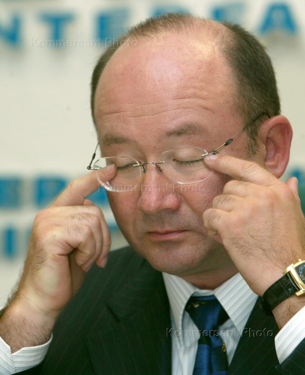 Президент Ассоциации Банков Центральной России (АРБ) Гарегин Тосунян во время пресс-конференции на тему: "Политтехнологический бандитизм. Раскрыт план проведения крупномасштабной диверсии в отношении банка "Уралсиб". Пресс-конференции прошла в агентстве "Интерфакс".