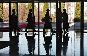 Рабочий визит президента России Владимира Путина в Казахстан. Рота почетного караула перед началом встречи президента Казахстана Нурсултана Назарбаева с президентом России Владимиром Путиным в здании государственной резиденции президента Казахстана.
