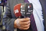 Пресс-конференция по итогам участия российской делегации в заседании Парламентской ассамблеи ОБСЕ в МИА "Россия сегодня". Жанровая фотография. Микрофоны сирийского телевидения и Сирийского арабского информационного агентства SANA (САНА).