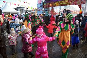 Площадь Куйбышева. Празднование Масленицы. Дети водят хороводы.