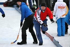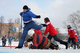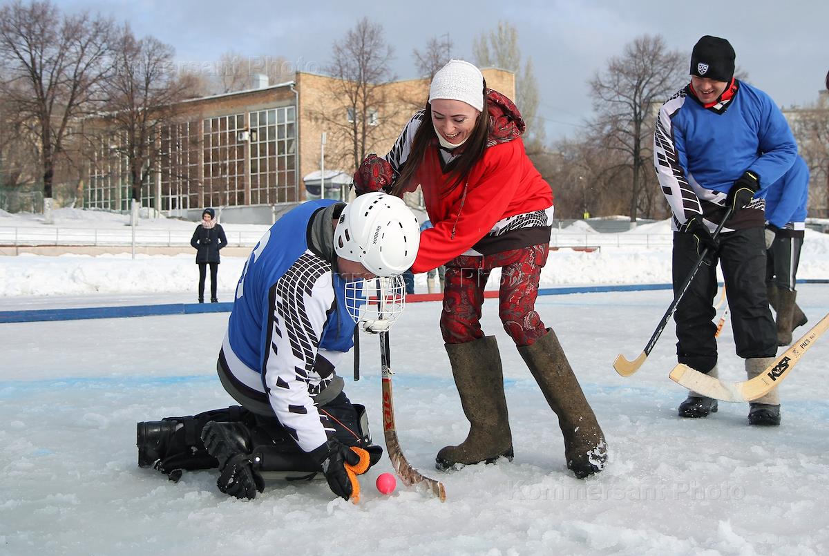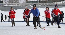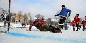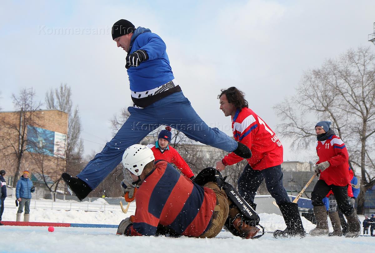 Первый открытый турнир по хоккею с мячом в валенках ко Дню защитника Отечества на cтадионе "Локомотив".