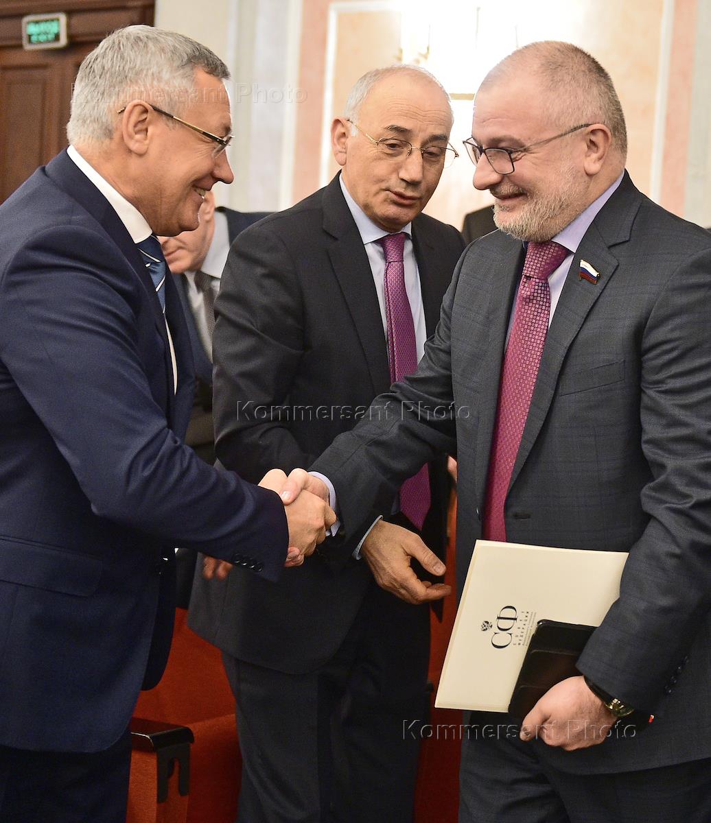 Заседание Совета председателей высших арбитражных, хозяйственных, экономических и других судов, разрешающих дела по спорам в сфере экономики в Верховном суде России. Слева направо: председатель комитета Совета Федерации России по конституционному законодательству, правовым и судебным вопросам, развитию гражданского общества Андрей Клишас, уполномоченный по правам человека в России Татьяна Москалькова и полномочный представитель Правительства России в высших судебных инстанциях Михаил Барщевский перед началом заседания.