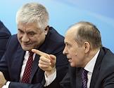 Рабочая поездка президента России Владимира Путина в Красноярск. Министр внутренних дел России Владимир Колокольцев (слева) и директор Федеральной службы безопасности (ФСБ) Александр Бортников (справа) на совещании по подготовке к проведению в Красноярске XXIX Всемирной зимней универсиады 2019 года. Совещание прошло в Конгресс-холле Сибирского федерального университета (СФУ).