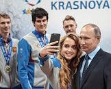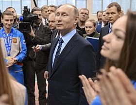Рабочая поездка президента России Владимира Путина в Красноярск. Президент России Владимир Путин (в центре) во время встречи с победителями XXVIII Всемирной зимней Универсиады 2017 года, которая прошла в Алматы, в региональном центре спортивной подготовки "Академия биатлона".