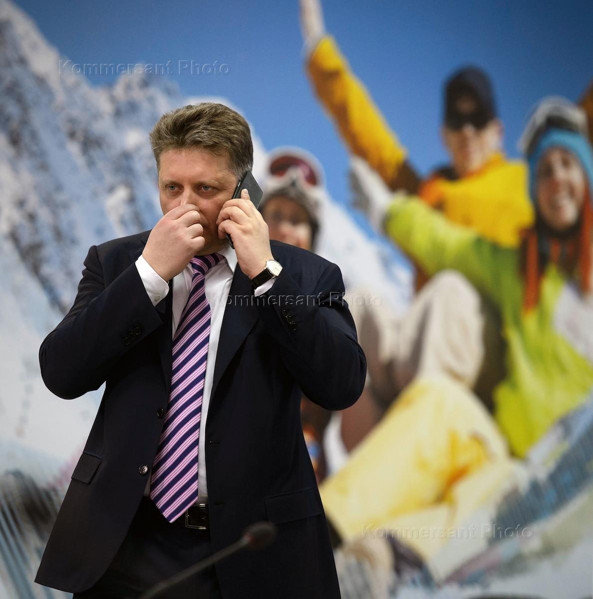 Рабочая поездка президента России Владимира Путина в Красноярск. Министр транспорта России Максим Соколов перед началом совещания по подготовке к проведению в Красноярске XXIX Всемирной зимней универсиады 2019 года. Совещание прошло в Конгресс-холле Сибирского федерального университета (СФУ).