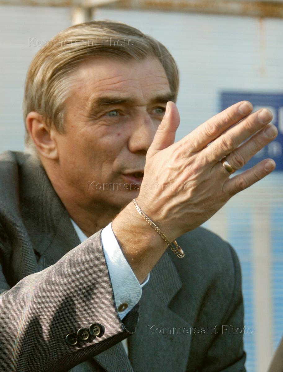Chief coach of the russian picked football team Georgy Yartsev attends the charitable football match "Our football's legends" between veteran players of the USSR team and "Spartak" club team. It was devoted to the Yury Gavrilov's aniiversary and took place at the "Dynamo" stadium.